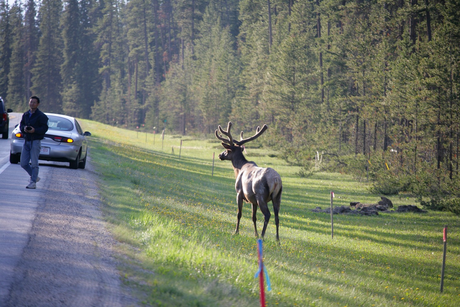 This animal was really disturbed by the people who kept getting ever closer for photographs. People will stop in the middle of the highways in Canada, whenever there is a wild animal. The photographers are much more dangerous than the animal. The beauty of traveling by motorcycle is that I have a very small profile and can pull to the side of the road and take pictures without ever leaving the bike. All of the following photographs are backlit by the late day sun |