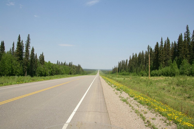 Straight and very lonely. It is a long way on the Alaska Highway until I get off at Whitehorse.