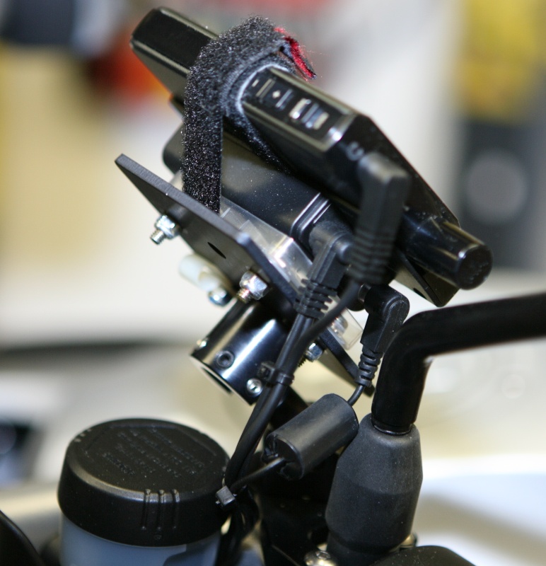 I use a Velcro strap to stabilize the radio in its mount. The INNO audio is fed back to the Autocom Pro AVi, mounted where the ‘tool kit’ was.