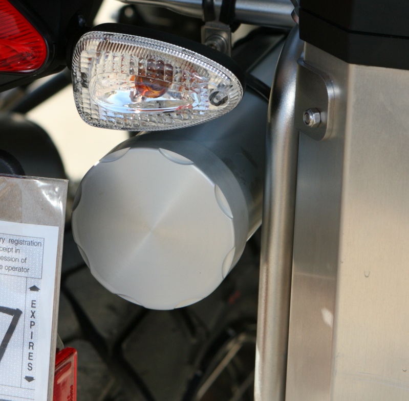 Since my Autocom took up the space for tools I added a GT Moto tool tube behind the right pannier mount.